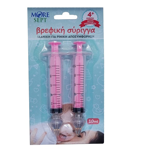 Γεμίστε τη σύριγγα με το κατάλληλο διάλυμα για βρεφική ρινική αποσυμφόρηση, τοποθετήστε απαλά το ακροφύσιο στο ρουθούνι και εγχύστε αργά το περιεχόμενο στη μύτη.
